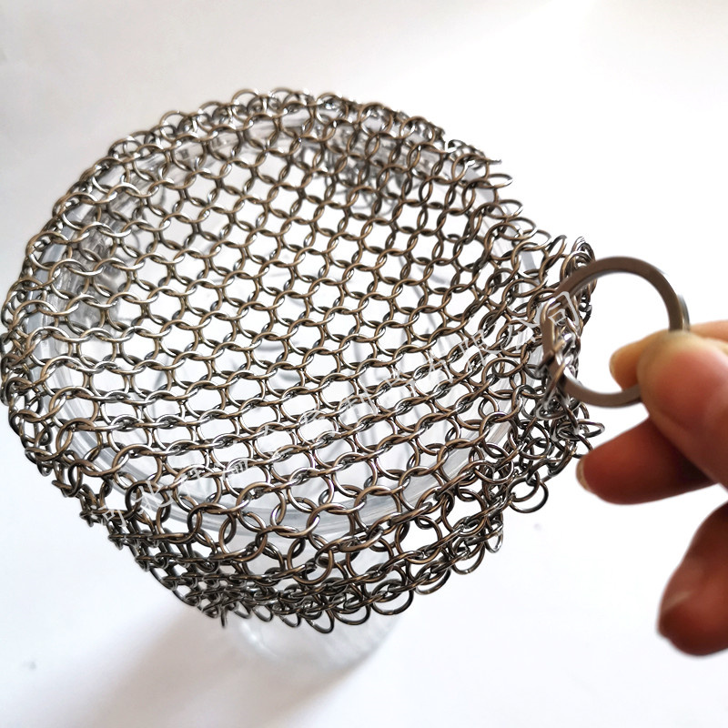 Glass Cup Cleaner Metal Stainless Steel Chain Mail Scrubber Ring Mesh Images |